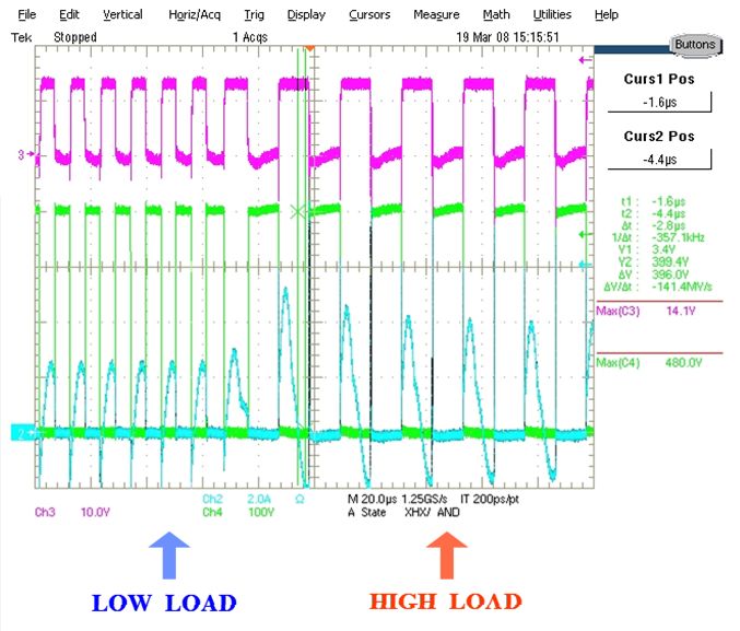 在高频应用中采用这种开关技术同样可以降低开关损耗,从而有助于缩减无源器件的尺寸。显而易见,开关功率损耗降低为在应用设计中选用尺寸更小的散热器提供了可能。零电压条件发生是MOSFET寄生体二极管导通所致。在负载快速变化过程中,MOSFET从零电压开关切换零电流开关,在这种情况下,高dv / dt值可使寄生双极晶体管导通并烧毁MOSFET。